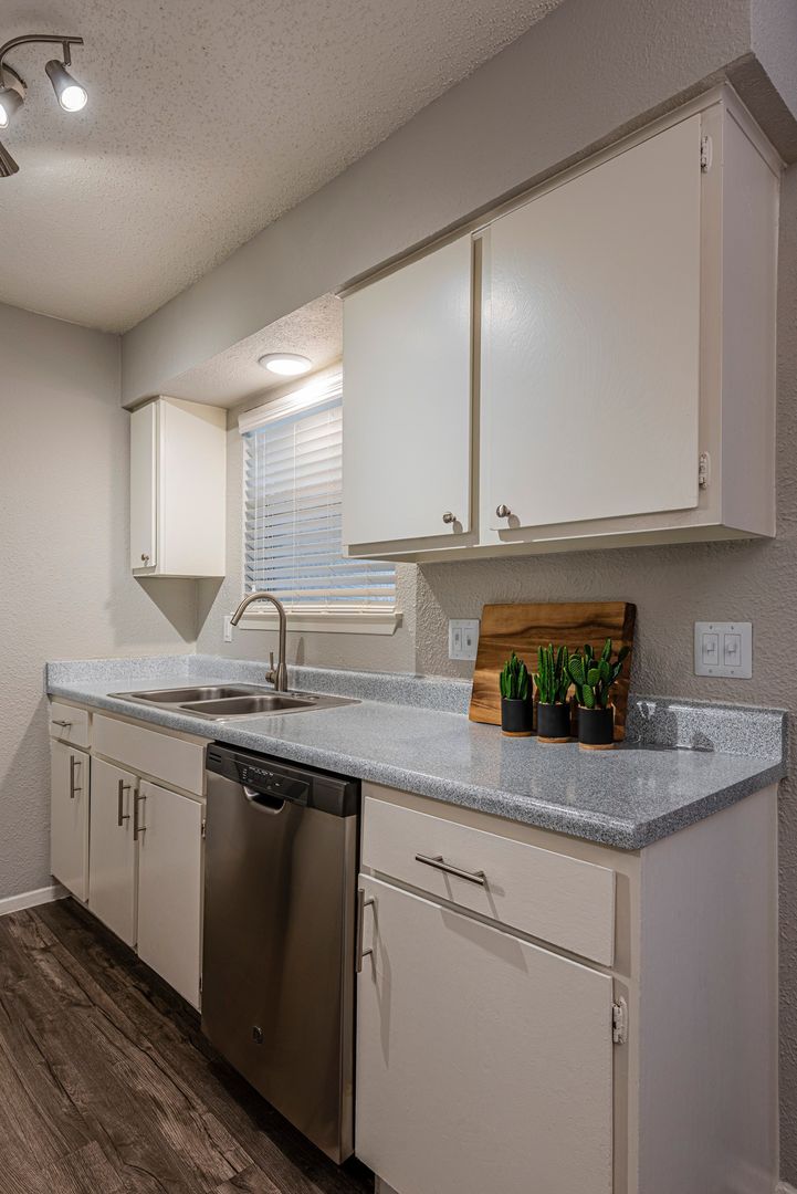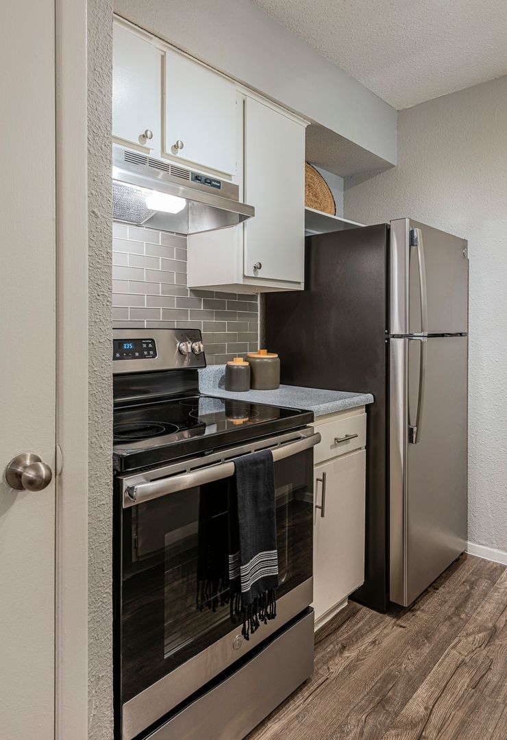 Our Premium units feature granite kitchen countertops, tile backsplash, stainless steel appliances, faux wood flooring and a modern two-tone color pallet. Our community also offers one onsite laundry facility, dog park, picnic area, BBQ grills and a playground. We invite you to view our floor plans, schedule an appointment or apply online, you can also stop by today and see them in person!